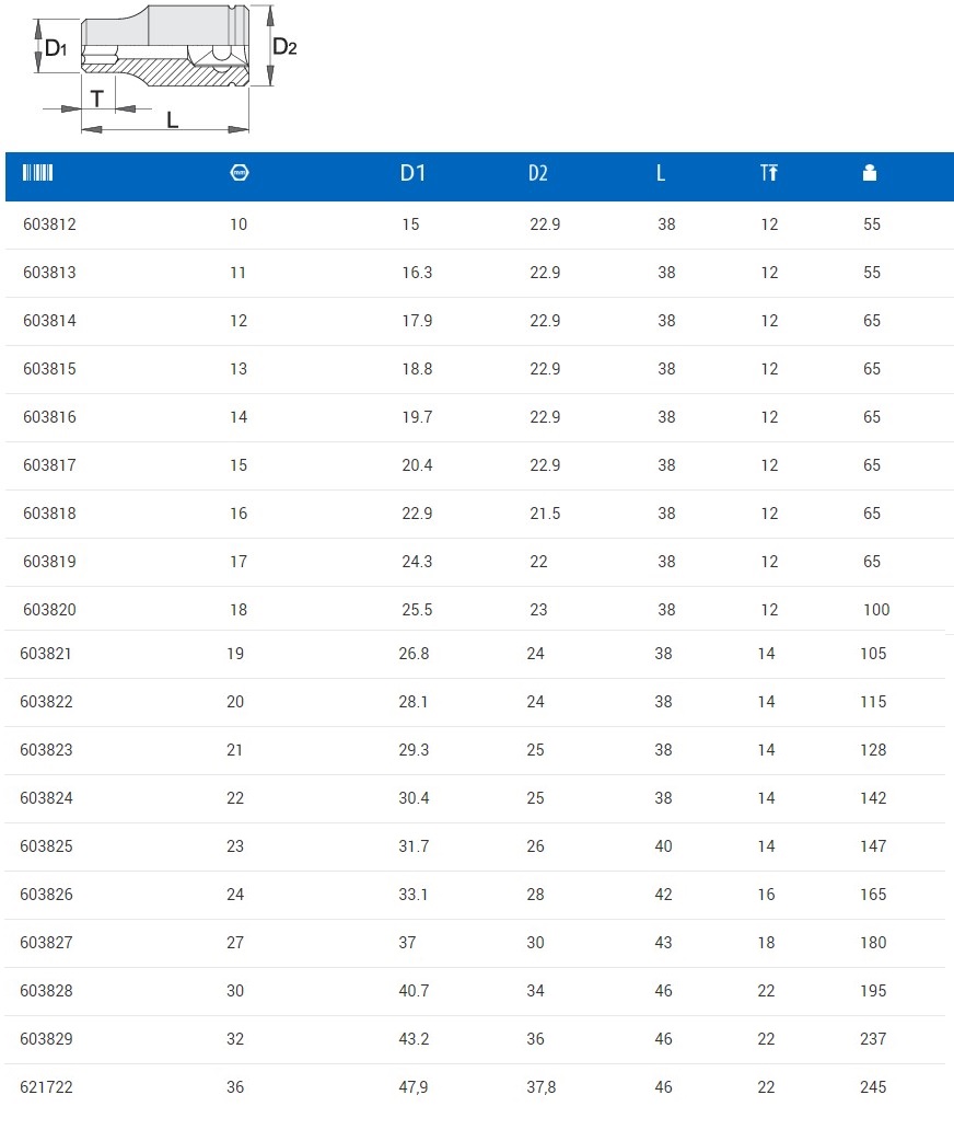 Καρυδάκι 1/2" πολύγωνο 190 12P, δωδεκάγωνο, διάσταση 11