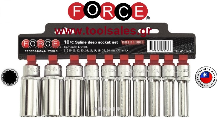 Καρυδάκια σετ 1/2" SPLINE Μακριά FORCE 41014 Q.Τεμάχια 10.Εχουν εφαρμογή στις περιπτώσεις:spline 6γωνο 12γωνο Ε torx.