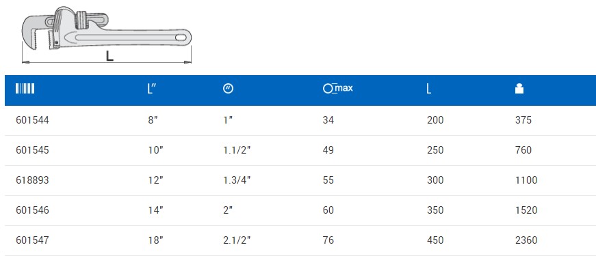 Σωληνοκάβουρας βαρέως τύπου, διάσταση 1"(8")